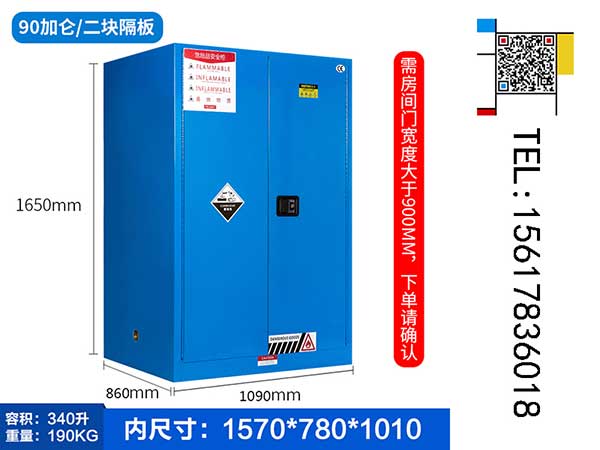 產(chǎn)品概述:90加侖易燃防爆柜是指容積為90加侖也就是容積340升的,承重200公斤,一種可以存放可燃物品的防爆柜。
