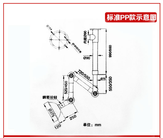 二、萬(wàn)向抽氣罩產(chǎn)品參數(shù)